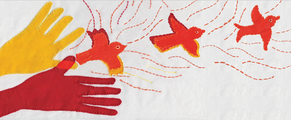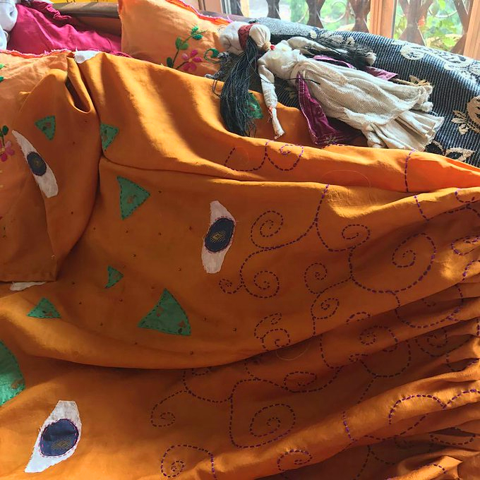 Indu will recycle anything, including love. Scraps have a special place in Indu’s art (and heart, forgive the rhyming). She creates illustrations from embroidered scraps and has even illustrated books in this style.