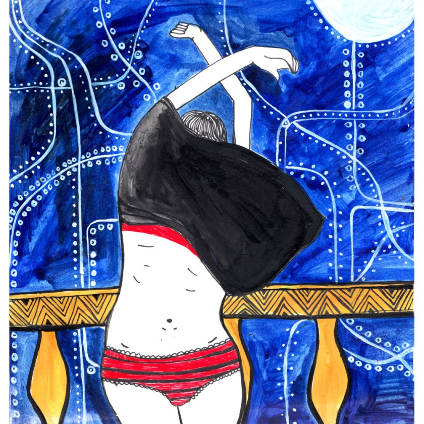 When we got talking, he suggested we to go to the best biryani place in town. It was a Military Hotel Mess. We then decided to go to an art gallery and look at Raja Ravi Verma paintings and spent hours in the gallery in silence. We then went to the park nearby and talked and talked until one of us suggested we eat, we went to shady erstwhile dance bar. Drunk on Old Monk and Coke, we walked back to his place. He lead me to the terrace and excused himself.