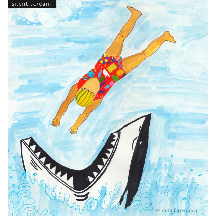I was nine. I didn’t want to do this but I had to please them. The first few days of swim lessons weren’t bad at all. I was even getting the hang of it. And then it happened. As I was walking to the pool he cornered me, dragged me to an isolated area (in broad daylight) and abused me. I tried to scream but he shushed me. I stayed quiet while he proceeded. There was anger and violence in his eyes. I will not forget the power his eyes had on me more than his hands. Someone walked by and he ran away leaving me confused, scared, clueless, shivering. Yet all I could think of was that I couldn’t miss swim lessons. What happened after that is still a blur. It’s as if I woke up from that state of daze when I felt something between my legs. I was in the over-crowded pool. What I was feeling was someone’s hand under the water. My swim instructor. His fingers were where just half an hour back someone else’s had been. I cried silently but didn’t stop him, didn’t scream, didn’t say anything. The water camouflaged my tears.