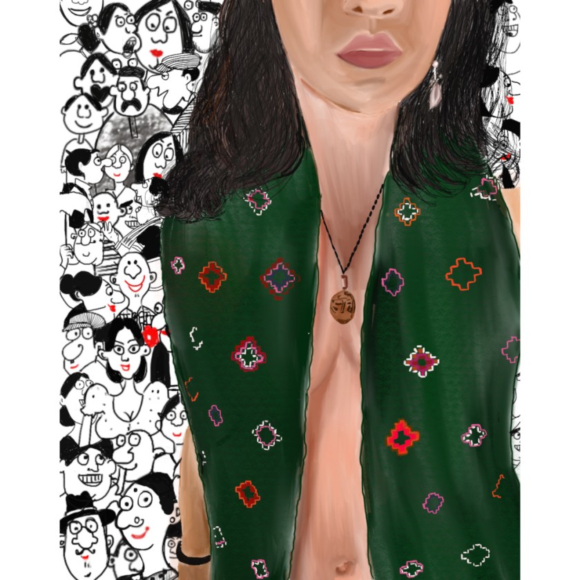 They wanted to be drawn among lots of people. “Just trying to symbolise that one day, I will not have to think about how I look or how others see me when I walk into a place full of people.”